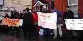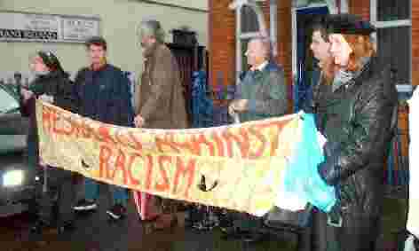 On 27th March 2001Anti-Racism groups held a protest tomorrow at Bertie Ahern's constituency office, St. Lukes in Drumcondra, to demand the dropping of charges against activists who were arrested at a protest last year. The eleven activists involved in the peaceful sit-in on March 28th 2000 have been charged under the Public Order Act and face large fines and possibily jail sentences.