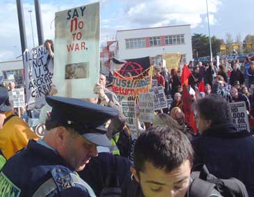 Saturday's demonstration revealed that even a small number of people taking direct action can shut the airport. What is needed is to build towards getting thousands to Shannon to not only carry out a mass trespass on the airfield but also to physically dismantle any war plane we catch on the ground there. A similar movement across Europe could deny the use of airbases across the continent and have a very real impact of the ability of the US and Britain to carry out their war against the people of Iraq.