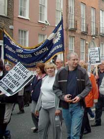 This march was called not by the campaign but by the Dublin Council of Trade Unions. There were as many as a dozen union banners on the march but the bulk of the numbers was made up of those resisting the imposition of the bin tax. Many would of course also be union members but there was no real evidence of any attempt by the unions to get people along apart from small ads in some of the papers the day before.
