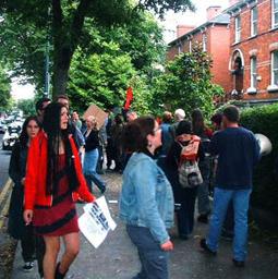 The first, called by the Leninist Socialist Party (in the name of Socialist Youth) had been called for lunchtime. As the embassy was in the suburbs the attendance at this was fairly modest, with around a dozen people including the Socialist Party T.D. Joe Higgins. Speaking to those in attendance he said the Socialist Party were against the police violence but also against the violence of the demonstrators.