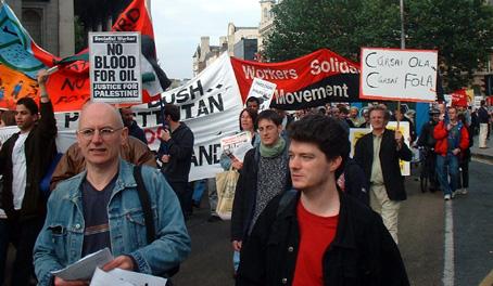 Saturday saw a sizeable anti-war demonstration in Dublin, in which over 2,000 people participated, organised by the Irish Anti-War Movement. This makes it slightly larger then the largest of the anti-Gulf marches of a decade ago. With the people of Iraq once more in the target sights of US bombers this is a good place for anti-war activists to build from.